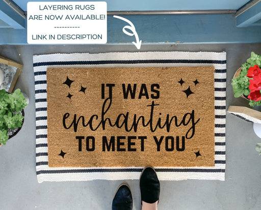 View full detailsWelcome your guests with a whimsical touch with our "It Was Enchanting to Meet You" doormat. A playful reminder of Taylor Swift's romantic lyrics, ...