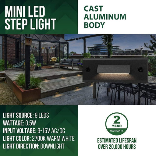 View full detailsThis 12V 2.5W White LED Outdoor Step Lights is perfect for mounting in hardscapes like best retaining wall lights, bricks, steps, and more. Just ...
