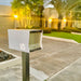 The optional pole is 3” x 3”, heavy duty extruded tubing. Pole price is $185.00 for a powder coated aluminum post available in white, black or coconut. The Stainless steel pole is listed at $269.00.