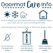 Care Info: Though we use all weather paints and a UV sealant to ensure that your mat is perfect for your doorstep, we suggest that you keep your mat as dry as possible to avoid darkening of the fibers. To clean, simply sweep…easy as that!
