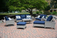 Bella products are made using aluminum frames that are wrapped with handwoven synthetic wicker. Our wicker is UV resistant, colorfast, environmentally friendly, weatherproof, and easy to clean. On Bella products that feature arms, Plantation teak is used as an accent to exude luxury. All Bella cushions are custom-made in-house with foam and Dacron cores covered with Sunbrella® fabric.