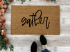 Accent your autumn decor with our Gather Fall Doormat! This durable outdoor doormat is hand-painted and made just for you. Featuring a bold text design that's sure to catch the eye of your guests, this cute welcome mat will complement your autumn front porch decor.